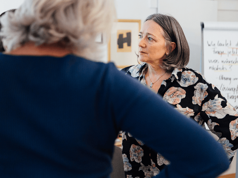 Nach jeder Aufstellung gibt es lösungsfokussiertes Feedback für die Gastgeber:innen. Nach vier Aufstellungen runden wir den Tag mit einer methodischen Reflexion ab und stellen die Anliegen des nächsten Tages vor.
